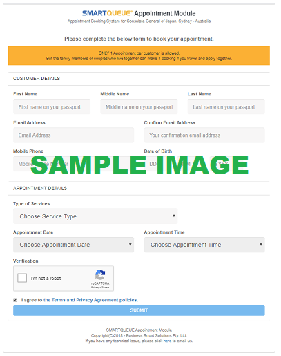 オンライン予約の際、利用者によって提供されたすべての情報は領事館員、関連委託業者及び法令に基づく開示要請があった場合の法執行機関によってのみ保存、伝達、共有されます。
