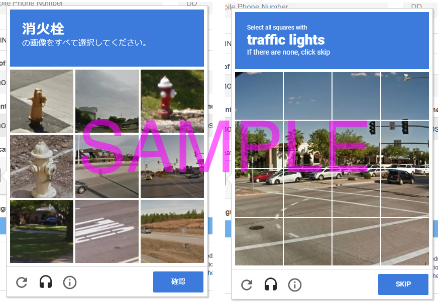 「Verification」の「私はロボットではありません」チェックボックスにチェックを入れ、続く質問にお答えくださ い。